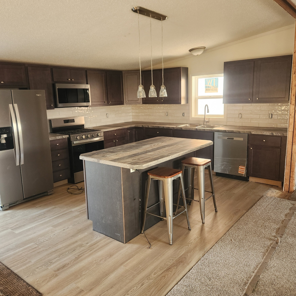 A typical home that we have refurbished as needed likely may include new shingles, new siding, new windows, and interior may include new flooring, new paint, repairs as needed. Each home will be delivered and set at your location.